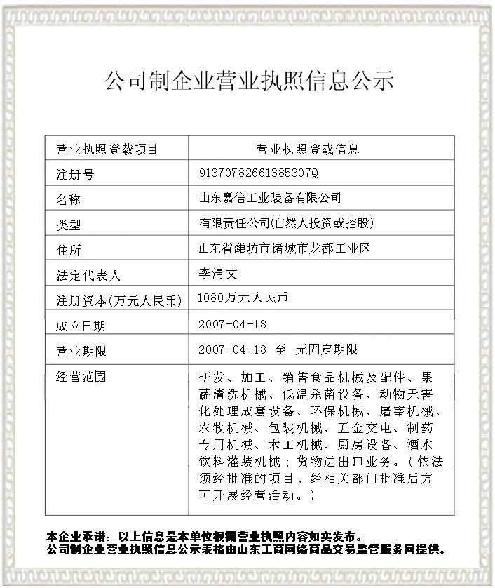 山東嘉信工業(yè)裝備有限公司,位于山東省諸城市,以生產(chǎn)食品機(jī)械為主,生產(chǎn)呼吸式真空滾揉機(jī),變頻斬拌機(jī),肉丸成型機(jī),肉丸成型蒸煮流水線(xiàn),刨肉機(jī),肉丸破碎機(jī),肉丸掛冰機(jī)及各種不銹鋼輔助設(shè)備的研發(fā)與制造,產(chǎn)品行銷(xiāo)全國(guó)各地,現(xiàn)已擁有各類(lèi)機(jī)械加工設(shè)備,能夠滿(mǎn)足不同層次用戶(hù)的需要。自創(chuàng)辦以來(lái),我們本著誠(chéng)信經(jīng)營(yíng)的原則,奮力進(jìn)取,勇于開(kāi)拓,充分吸收國(guó)內(nèi)外技術(shù),集眾家之所長(zhǎng),經(jīng)過(guò)多年的努力拼搏。使嘉信公司成為國(guó)內(nèi)具有競(jìng)爭(zhēng)力的廠(chǎng)家,公司目前擁有很多的技術(shù)人才,成熟的市場(chǎng)渠道。良好的企業(yè)聲譽(yù)。 嘉信公司是以生產(chǎn)食品機(jī)械為主,生產(chǎn)呼吸式真空滾揉機(jī),變頻斬拌機(jī),肉丸成型機(jī),肉丸成型蒸煮流水線(xiàn),刨肉機(jī),肉丸斬碎機(jī)......